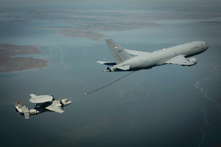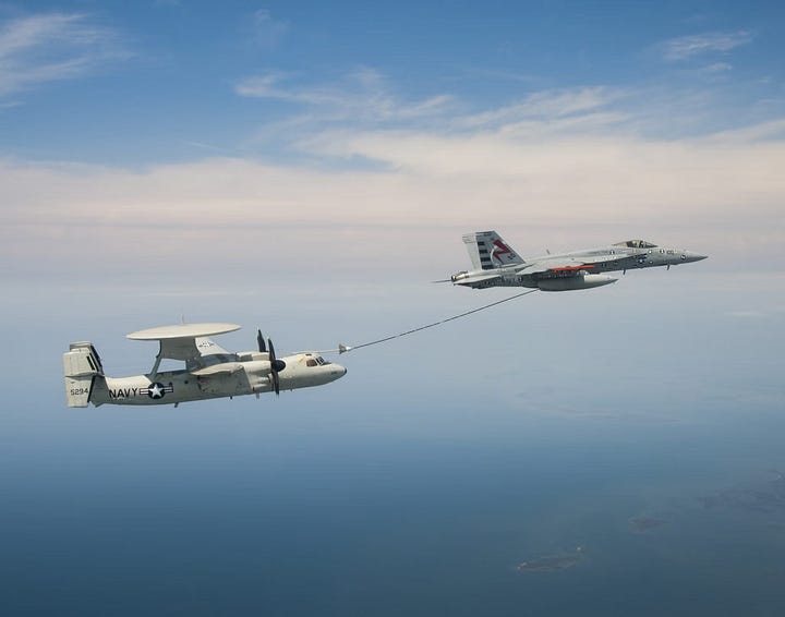 Aerial refuelling is increasingly important for air forces and navies alike, given the imperative of squeezing as much as possible from each and every aircraft sortie. While flight hours undoubtedly affect maintenance needs and are ultimately restricted more by human physiological constraints than fuel availability, provided that aerial refuelling is undertaken, sorties, which encompass take-off and landing sequences as well as the pressurization and depressurization of the cabin, are a particularly important logistical consideration as it concerns carrier-borne aircraft. This is especially the case with CATOBAR AEW&C aircraft like the E-2 and KJ-600, which occupy a very large footprint even with their folding wings.