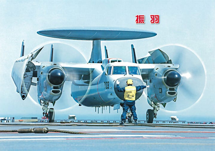 The recent commissioning of China’s first catapult-assisted take-off barrier arrested recovery (CATOBAR) aircraft carrier, the Fujian (18), constitutes a major milestone in the evolution of the People’s Liberation Army Navy Air Force (PLANAF), which exclusively operated ground-based fixed-wing crewed combat aircraft fifteen years ago and only divested of such aircraft in 2023. While the CATOBAR J-15T, J-15DT, and J-35 fighter aircraft that constitute the air wing of the Fujian and future Chinese CATOBAR aircraft carriers have received considerable attention, the single most important aircraft embarked on the Fujian is the KJ-600, which is a CATOBAR turboprop-powered, radar-equipped airborne early warning and control (AEW&C) aircraft. The KJ-600 is broadly analogous to and, for reasons rooted in physics and engineering, closely emulates the American E-2 Hawkeye family of CATOBAR AEW&C aircraft, which is also the single most important aircraft type of aircraft embarked on American aircraft carriers.