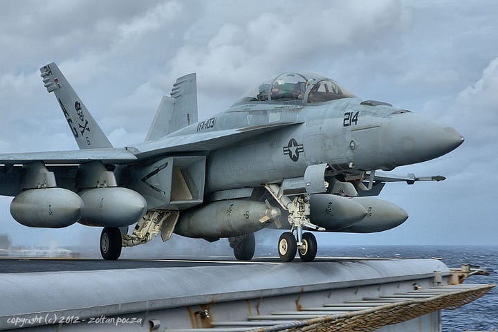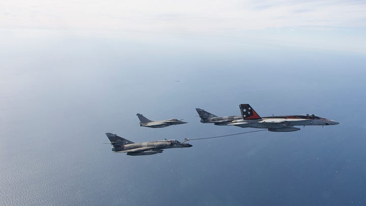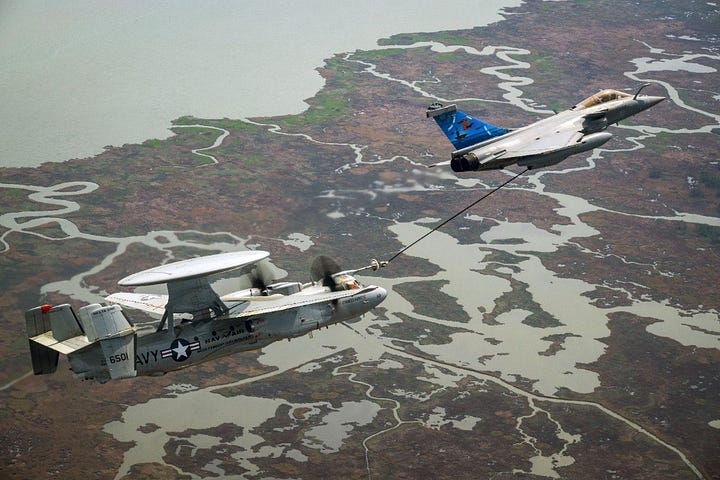 Third, pilots are sometimes unable to successfully approach their aircraft carrier within the required flight parameters and/or capture the arresting gear for any number of reasons, which can result in a critically low fuel situation in which the aircraft may be forced to ditch into the sea even if other aircraft are able to take off and land on the aircraft carrier. With the capacity to undertake aerial refuelling, another CATOBAR aircraft, including one that was not originally airborne, can be used to refuel the affected aircraft that is unable to land for whatever reason.