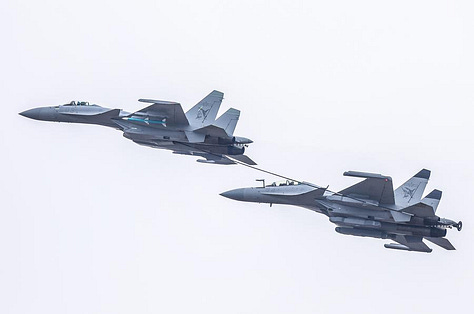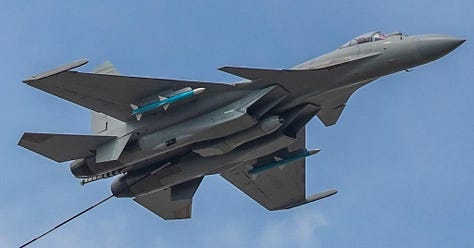 It is worth mentioning that the Soviet Su-27 design family was developed for use by both the Soviet Air Force and the (separate) Soviet Air Defence Forces (i.e., the PVO Strany), neither of which looked at the Su-27, a very large, high maximum take-off weight fighter aircraft with an essentially unrivalled internal fuel capacity, as lacking in terms of range. As a result, the original Su-27 design, as opposed to the Su-30 and later versions of the Su-27 design family, such as the Su-35, was deployed by the Soviet Union without a nose-mounted refuelling probe. The Chinese-built J-11B, which is deployed in large numbers by the PLAAF and will likely remain in service for another one to two decades, cannot be refuelled in flight, a shortcoming that was only corrected with the Chinese-built two-seat J-16 fighter, which is also deployed in large numbers by the PLAAF, and the J-11D prototype, which was developed as a successor to the J-11B but was superseded in terms of PLAAF procurement by the J-16. The PLANAF’s original STOBAR J-15 was, however, first deployed with a retractable nose-mounted refuelling probe.
