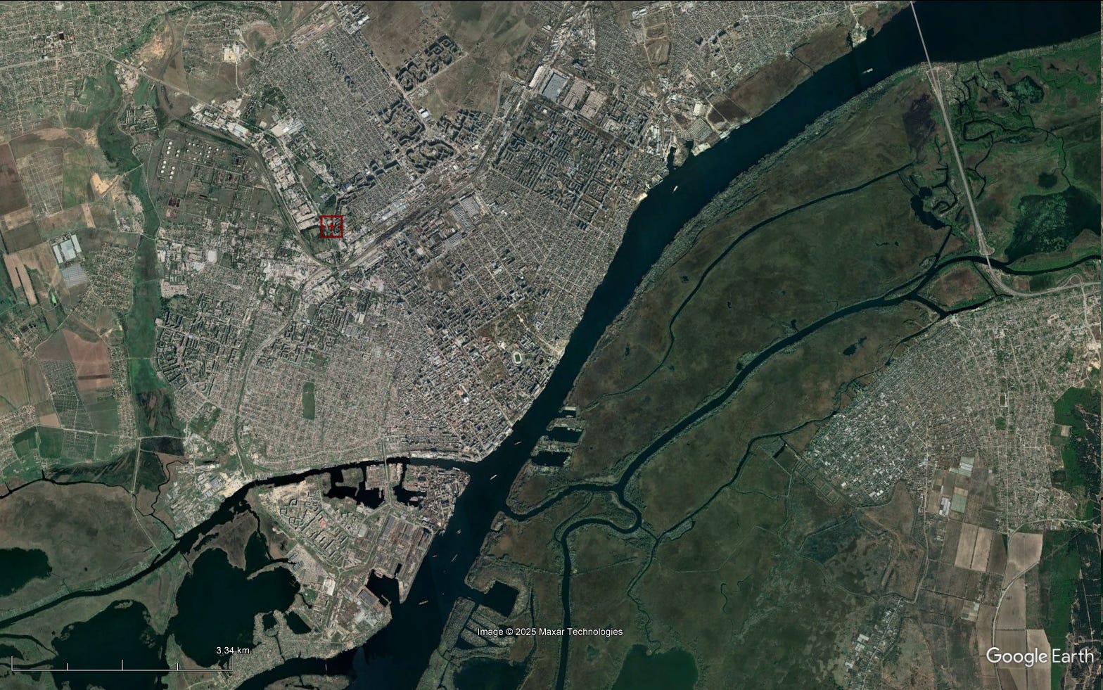 The above video is particularly interesting for several reasons. First, the petrol/gas station in question has been geolocated to 46°39'34.3"N 32°35'37.9"E by X/Twitter user @99Dominik_. This petrol/gas station is located some eight kilometers from the nearest Russian-occupied settlement on the left/eastern bank of the Dnieper River. The “FPV” multirotor drone in question, which may have been of the FO uplink/downlink variety, likely flew over many buildings and other structures to reach this petrol/gas station.