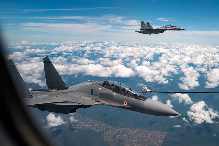 The above images capture Indian Su-30MKI fighter aircraft, which are of Soviet-Russian origin in the same manner as the Chinese People’s Liberation Army Air Force’s (PLAAF) J-16 fighters, being refuelled from Airbus A330 MRTT aerial refuelling/tanker aircraft. There is, at this time, no public indication that any PLAAF fighter aircraft, including the J-16, have ever been refuelled by a foreign tanker aircraft, although the practice of PLAAF aircraft being refuelled by Russian Air Force and Pakistan Air Force aerial refuelling aircraft cannot be ruled out.