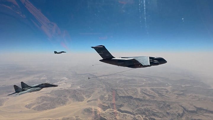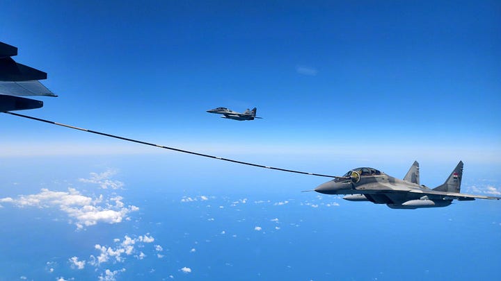 As of this writing, there is only one publicly known instance in which a PLAAF aerial refuelling aircraft has refuelled a foreign military aircraft. In April-May 2025, China and Egypt held a bilateral military exercise, which was hosted by Egypt, for which the PLAAF deployed not only J-10 fighter aircraft but, among other things, a YY-20A aerial refuelling aircraft that was recorded refuelling Egypt’s Russian-built MiG-29M fighters. While the Egyptian Air Force operates probe-equipped French-built Rafale and Mirage 2000 fighter aircraft that should have been able to receive fuel from the Chinese YY-20A, Egypt’s French-built fighter aircraft are not understood to have participated in the bilateral China-Egypt military exercise in the same manner of the country’s large fleet of American-designed F-16 fighters, which can only be refuelled through the use of a flying boom.