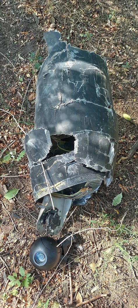 The Ukrainian source of the above images claims that the Geran-2 airframe in question was downed some 130 kilometers from the frontlines. Not only would the Geran-2 airframe in question require a radio frequency datalink to facilitate real-time human supervision, if not real-time human control, but an aerial repeater/radio relay would have been used, given the claimed distance from the frontline, which far exceeds the line-of-sight range of a ground-based radio antenna in Russian-controlled territory. That said, it is possible that sensor-equipped Geran-3 airframes are intended for use against fairly proximate targets, such as the Ukrainian city of Dnipro, with the significantly higher cruise and maximum speed being intended to increase the probability of penetrating Ukrainian air defences. A target in the Dnipro metropolitan area would remain within the maximum practical coverage of an aerial radio relay/repeater.