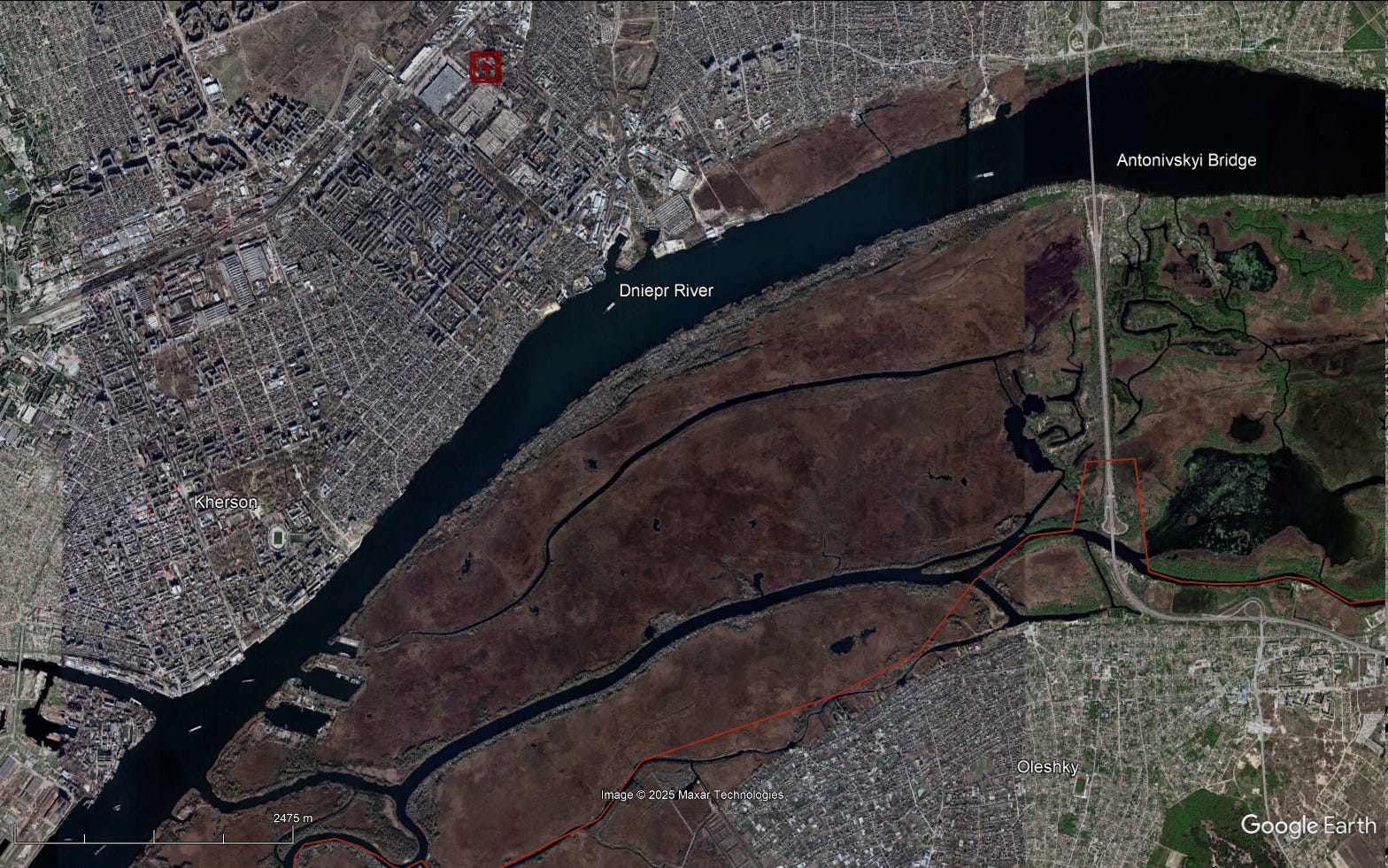 Some context is required to fully appreciate the insight offered by these two videos. Cities in Ukraine and other parts of the former Soviet Union, which are generally characterized by harsh winters, often rely on district heating to keep apartment buildings habitable in the winter. District heating is notably very similar in concept to district cooling, which is found in places with arid climates such as the Gulf Arab states. While all contemporary countries have exposed critical infrastructure, including electricity generation and transmission infrastructure, some countries also have centralized heating and/or cooling systems that amount to an additional layer of vulnerability independent of the economic and energy efficiencies associated with centralized, as opposed to decentralized, heating and/or cooling. The target of the armed “FPV” multirotors is a relatively small gas-burning thermal power plant in the Kherson metropolitan area that also provides district heating in the winter. Electricity generation in the Kherson area has been severely affected by the war not only due to a period of Russian occupation and ongoing proximity to the frontline—Russian forces occupy the opposite (left/east) bank of the Dnieper—as well as Russia’s country-wide targeting of Ukraine’s electricity generation and transmission infrastructure, but the June 2023 destruction of the nearby Kakhovka Dam, which encompassed a hydroelectric power plant that supplied electricity to the Kherson area.