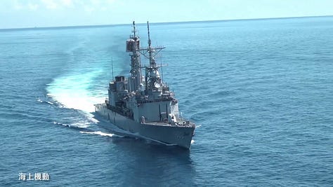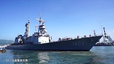 As noted earlier, the Taiwanese surface fleet is very poorly positioned to extend a credible air defence capability beyond Taiwan’s coastline. The above screenshots either show warships with negligible air defences or qualitatively and/or quantitatively very deficient air defences. China’s maritime strike capabilities—ground-, sea-, air-, and submarine-launched maritime strike munitions—are extremely formidable over a distance of 200-300 kilometers from the Chinese coastline. The Taiwanese navy not only faces the increasingly potent threat posed by Chinese supersonic anti-ship munitions, but also operational and prospective Chinese anti-ship ballistic missiles. Given the military-geographical context of the Taiwan Strait, China does not need the likes of the DF-21D and DF-26 anti-ship ballistic missiles to target Taiwanese naval ships. Far smaller, lighter, less sophisticated, less expensive, and, as such, likely more numerous—should the PLA heavily invest in this capability area—will do when it comes to targeting warships—and merchant ships—over a distance of 200-300 kilometers. It bears emphasis that the Taiwanese navy does not currently have any (naval) ballistic missile defence capability and that Taiwan’s currently operational ground-based ballistic missile defences only extend a limited protective footprint out to sea.