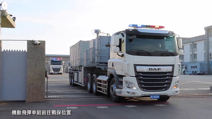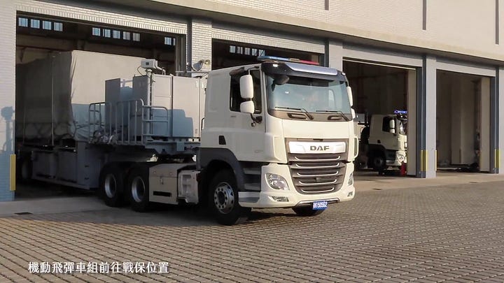 A lot hinges on Taiwan’s ability to successfully employ its expanding, increasingly diverse, and, in certain respects, increasingly sophisticated arsenal of anti-ship cruise missiles. As with its naval minelayers, Taiwan’s anti-ship cruise missile batteries, particularly the launchers associated with the very large and heavy Hsiung Feng III ramjet-powered supersonic anti-ship cruise missiles, are prime targets for the PLA in their garrisons, the garages of which are pictured above. As I’ve explained in other contexts, there is a very real prospect that the PLA will deploy propeller-driven fixed-wing loitering strike drones, some of which may have automatic target recognition and automatic target engagement capabilities, to hunt for highly differentiated/distinguishable Taiwanese military vehicles moving on roads—the above trailer-type launcher has negligible cross-country mobility—in time of war. While there are other, more practical and promising ways to go about deploying anti-ship cruise missile launchers on the island of Taiwan, the approach exemplified in the above images does not inspire much confidence, given current technological trends and the fact that just 130-180 kilometers of water separates the island of Taiwan from China (at the narrowest points).