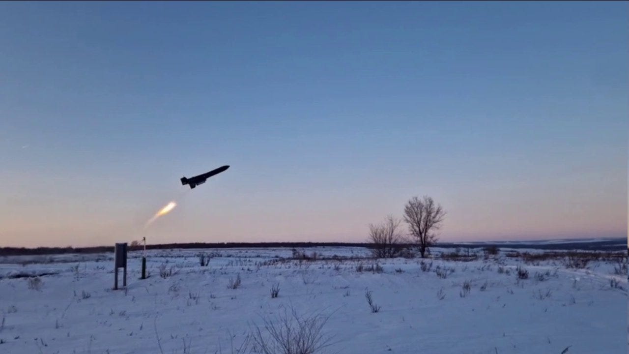 The above screenshot from the winter video features a cropped delta wing strike drone that is consistent in shape with the Shahed-136/Geran-2/Garpiya.