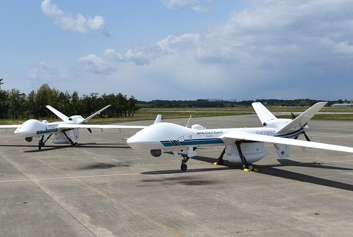 3 MQ-9B SeaGuardian surface search radar-equipped large uncrewed fixed-wing maritime patrol aircraft, which are a variant of the American MQ-9 Reaper.